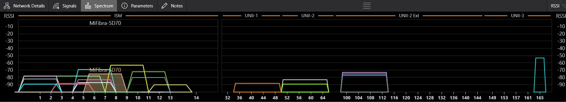 Ces signaux sous la forme d’un graphique que nous trouvons, fournissent des comparaisons avec d’autres réseaux à proximité, de sorte que chaque couleur se réfère à chaque WiFi qui a été trouvé lors de l’analyse. Cela nous sera très utile pour vérifier efficacement l’utilisation des canaux ou l’ intensité des signaux .
