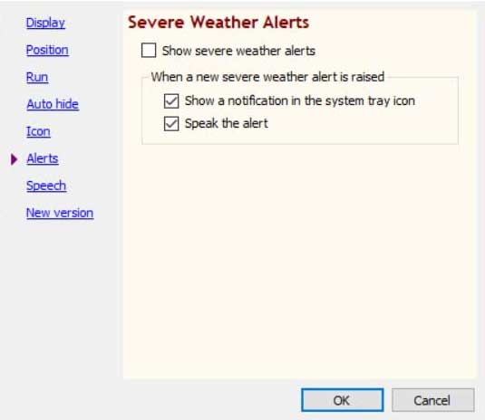 Mais ce n’est pas tout ce que nous pouvons personnaliser ici dans le programme WeatherMate. D’autre part, nous pouvons également le faire toujours démarrer avec le système d’exploitation afin qu’il soit toujours en cours d’exécution. Nous avons également la possibilité de spécifier des alertes pour certaines conditions météorologiques dans notre région, y compris des invites vocales .