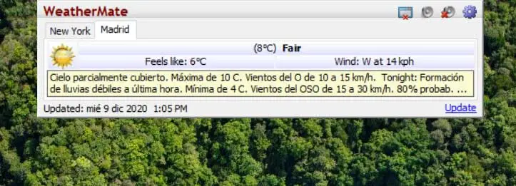 Comme nous l’avons mentionné précédemment, lorsque nous parlons de WeatherMate, nous faisons référence à un programme gratuit qui nous permet de connaître la météorologie de votre région à tout moment. Il s’intègre également de manière transparente dans le bureau Windows 10 et dispose d’une multitude de paramètres personnalisables. Par conséquent, pour cela, nous devons télécharger le programme à partir de ce lien .