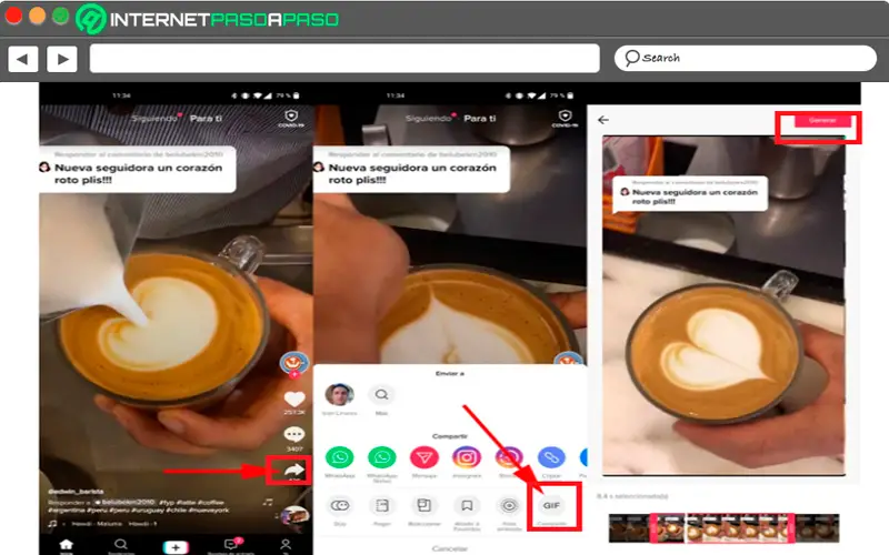 Pour pouvoir le faire, il vous suffit de vous rendre sur la vidéo que vous souhaitez utiliser et de cliquer sur la flèche «Partager» située en bas de votre écran. Là, vous devrez sélectionner la dernière option qui apparaît dans le menu déroulant «Partager en tant que Gif». Comme si cela ne suffisait pas, vous pouvez modifier la lecture afin de pouvoir sélectionner le moment exact que vous souhaitez capturer . Le Gif créé automatiquement sera enregistré dans la galerie de votre smartphone afin que vous puissiez commencer à le partager .