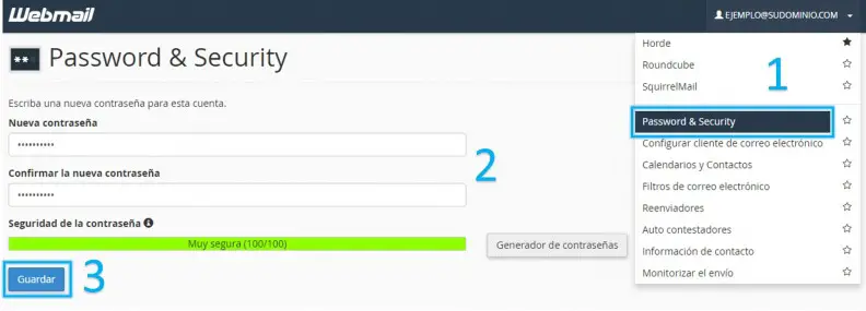 Vous avez la possibilité d’en définir un complètement nouveau par vous-même, ou simplement de taper sur le générateur pour en créer un aléatoire complètement sûr. Choisissez la méthode que vous préférez et passez à autre chose . Vous avez déjà changé le mot de passe et vous pouvez maintenant vous connecter à cet e-mail avec vos nouveaux codes d’accès.