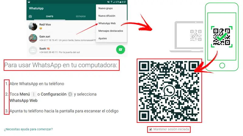 De nombreux utilisateurs essaient de savoir s’il est possible de se connecter à WhatsApp Web sans le code QR car ils ont des problèmes avec la caméra de leur smartphone ou recherchent simplement une alternative plus confortable, et la réponse est négative . Il n’y a aucun moyen de le faire, c’est une exigence fondamentale et sans laquelle vous ne pouvez pas commencer à utiliser cet outil en ligne sur un ordinateur.