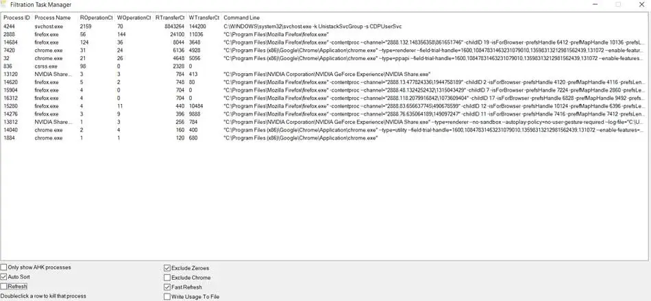 En même temps, nous pouvons arrêter l’actualisation automatique des données, car si cela se produit rapidement, pouvoir les analyser peut être quelque peu compliqué. Comment pourrait-il en être autrement, nous pouvons également trier les colonnes en cliquant simplement sur leur en-tête. Tout cela nous permettra d’ajuster le programme au maximum pour pouvoir extraire les informations qui nous intéressent le plus à tout moment. De la même manière, cela nous permet de terminer un processus par un double clic dessus afin d’éliminer celui qui est bloqué, par exemple.