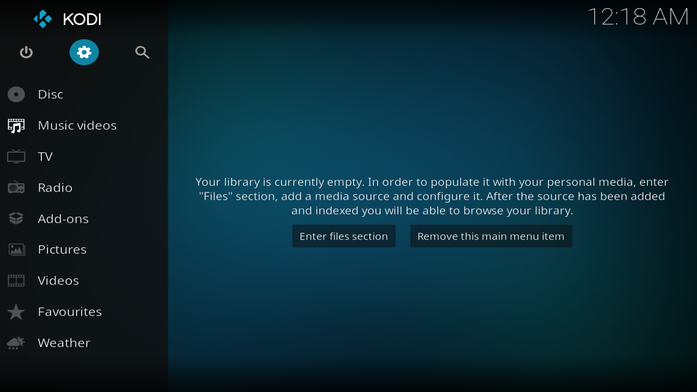 Depuis l’écran d’accueil de Kodi, cliquez sur l’ icône Paramètres . C’est celui qui ressemble à un petit engrenage en haut à gauche de l’écran.