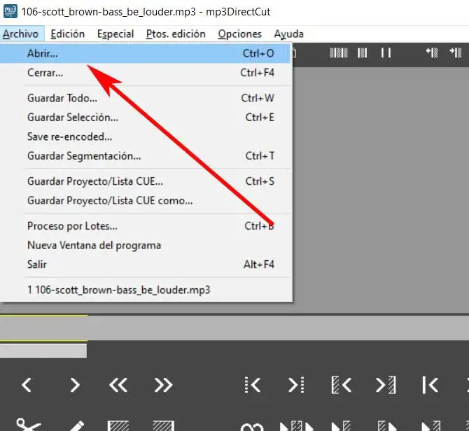 Comme nous l’avons mentionné précédemment, il s’agit d’un programme d’édition audio qui se caractérise par sa simplicité d’utilisation, ce que nous pouvons voir lorsque nous voyons son interface. De cette façon, pour normaliser ou couper nos pistes audio , la première chose à faire est de charger le fichier pour l’éditer plus tard. C’est quelque chose que nous pouvons effectuer à partir du menu Fichier / Ouvrir, afin de pouvoir sélectionner le fichier correspondant. De la même manière, nous pouvons directement faire glisser ces fichiers vers l’ interface du programme.