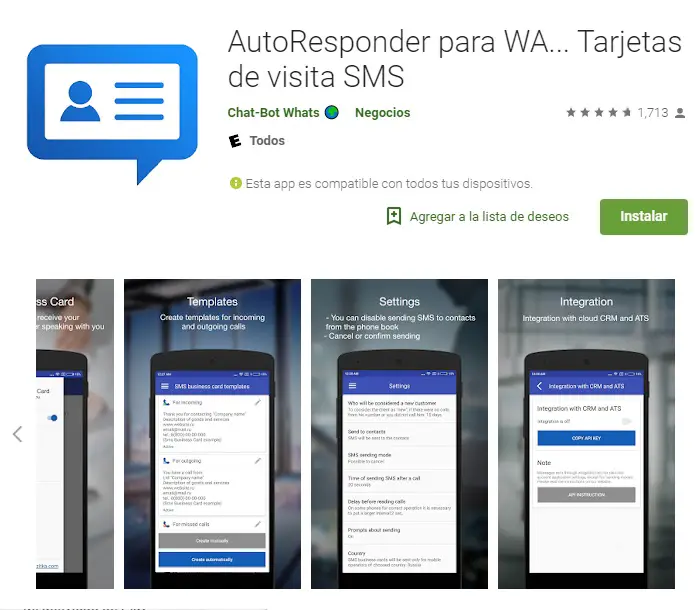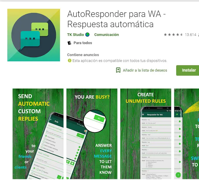Une nouvelle application dans le Play Store, elle compte actuellement peu d’utilisateurs qui l’ont essayée. L’inconvénient qu’il peut avoir aujourd’hui est qu’il est en anglais, mais sa configuration et son utilisation sont similaires à d’autres outils déjà indiqués précédemment, donc ce n’est pas une limitation pour l’utiliser, vous pouvez l’essayer et comme à d’autres occasions, configurer et voir que les réponses automatiques fonctionnent correctement.
