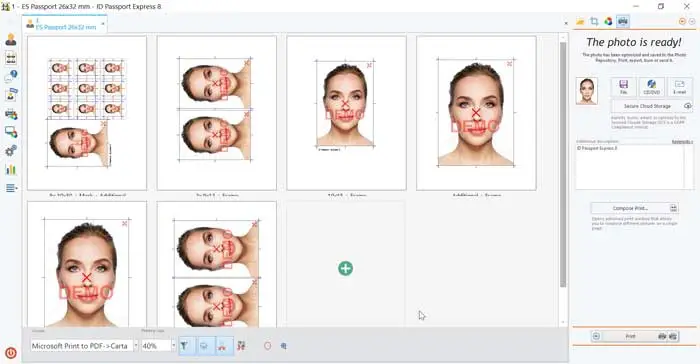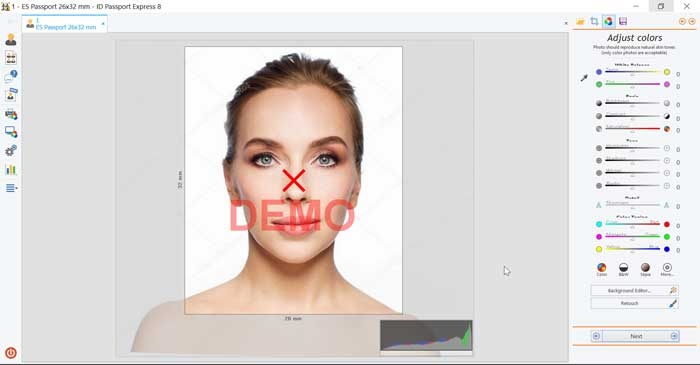 Ce programme dispose d’algorithmes avancés qui sont responsables de la détection automatique de la tête, du visage, du nez, des oreilles, des yeux, de la bouche, du menton, etc., de la photographie, pour corriger plus tard l’instantané, changer sa taille et l’adapter à ce qui est conforme au type de documentation officielle dont nous avons besoin. De plus, il est capable de détecter des problèmes tels que l’expression de la bouche, des lunettes de soleil, des reflets, entre autres.