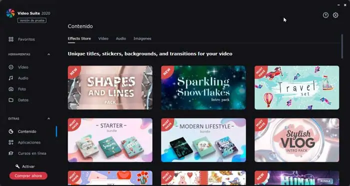 Si nous recherchons un autre éditeur vidéo complet, VideoStudio est une autre alternative que nous pouvons envisager. Cet éditeur vidéo se caractérise par une interface colorée et très intuitive, ainsi qu’un assistant qui nous aidera pendant le processus d’édition en fonction de ce que nous voulons faire avec nos vidéos. Il est compatible avec toutes sortes de formats et nous permet également d’éditer les photos que nous voulons ajouter à la vidéo, étant une alternative complète tout-en-un.