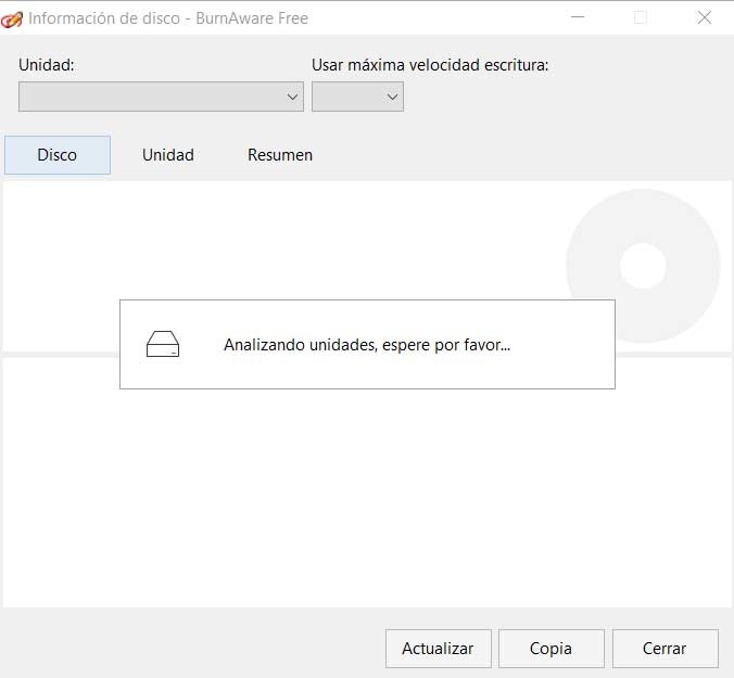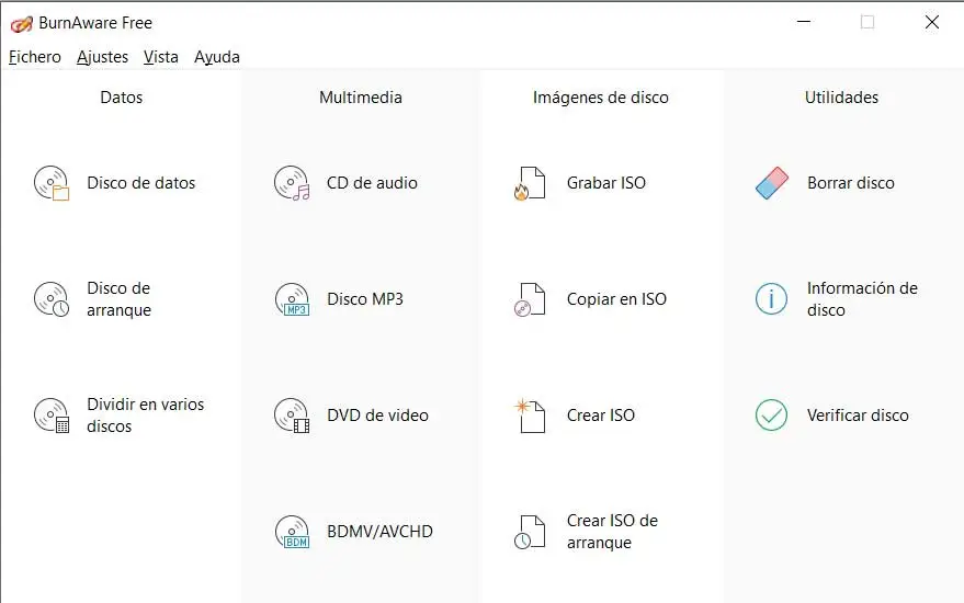 De cette manière, tous auront la possibilité de graver facilement des disques amorçables, des CD audio avec de la musique, des DVD vidéo ou des disques multisession . Nous pouvons également utiliser ces supports physiques afin de créer nos propres copies de sauvegarde de tous types de données. Ainsi, pour tout ce que nous commentons, nous pouvons bénéficier des nombreuses options de BurnAware. Et c’est bien sûr qu’il ne s’agit pas seulement d’enregistrer des données sur ces supports et c’est tout, mais cela inclut également des fonctions de contrôle contre les erreurs dans l’enregistrement.