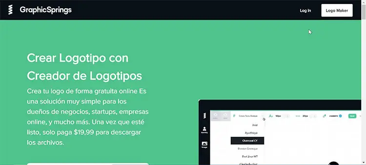 Créer des logos avec Graphic Spings est gratuit et pour cela il suffira d’ entrer sur son site officiel . Cependant, si nous voulons le télécharger, nous devrons payer 19,99 $ en un seul paiement.