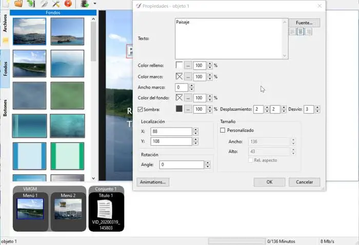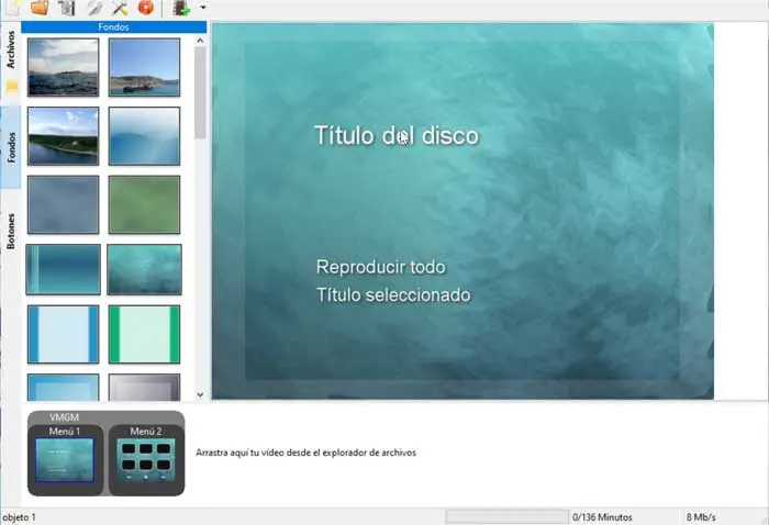 Cette application dispose d’un grand nombre de fonctionnalités pour personnaliser et éditer les menus de nos DVD. Pour ce faire, il suffit d’insérer une image d’arrière-plan et de là, d’inclure des boutons pour créer un lien vers les vidéos, ainsi que du texte ou d’autres éléments graphiques, jusqu’à ce que nous obtenions un résultat qui n’a pas grand-chose à envier aux programmes professionnels payants.
