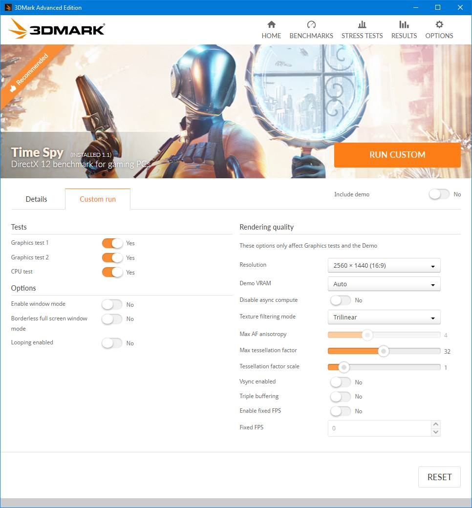 Si nous achetons l’application seule, sans pack comme celui de Steam, nous pouvons utiliser tous les tests sauf Time Spy et Port Royale, ainsi que les sous-tests (comme DLSS) qui y sont inclus.