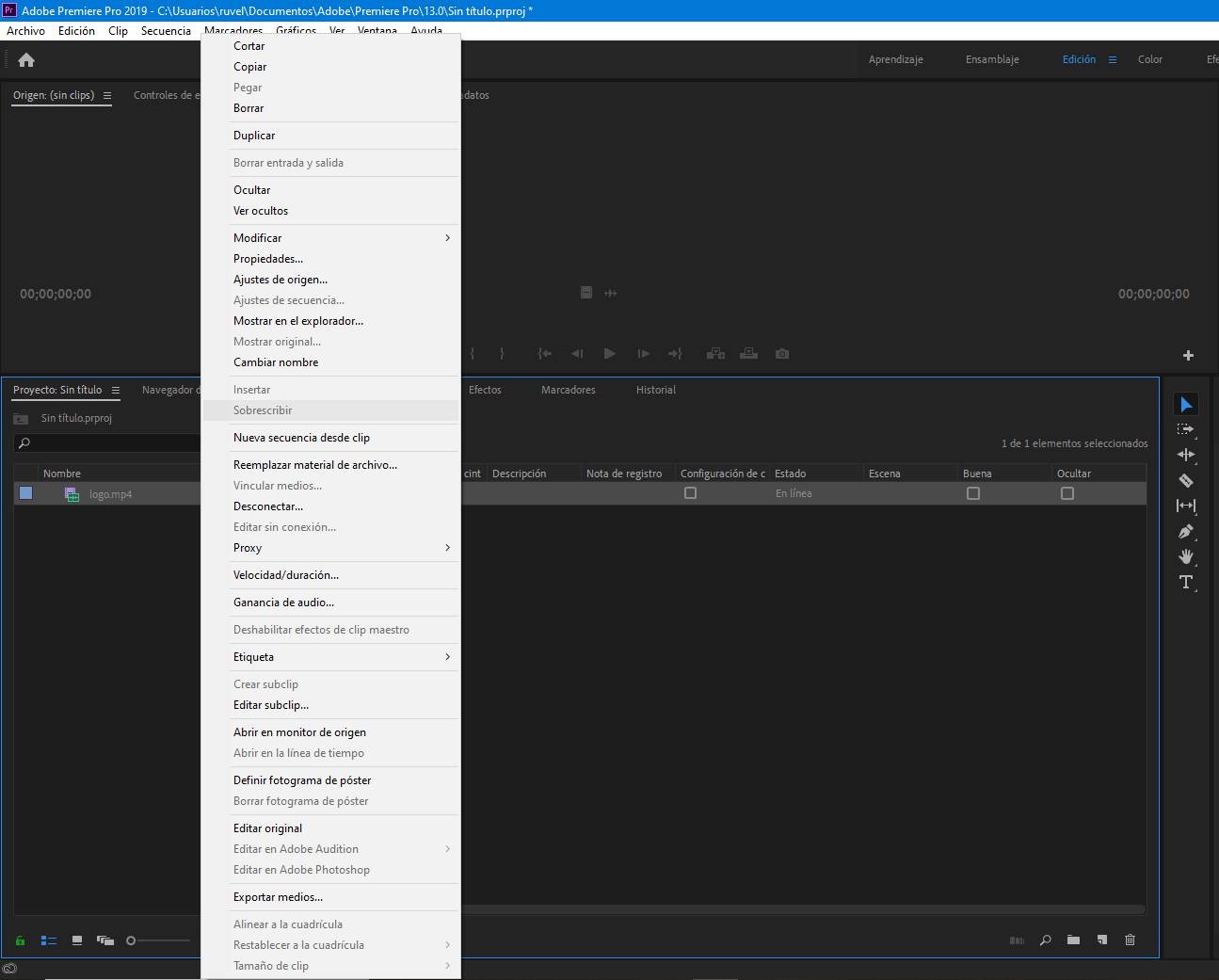 Si nous faisons un clic droit sur un clip vidéo chargé dans ce programme, nous pouvons voir une série d’options qui sont regroupées dans le menu contextuel.