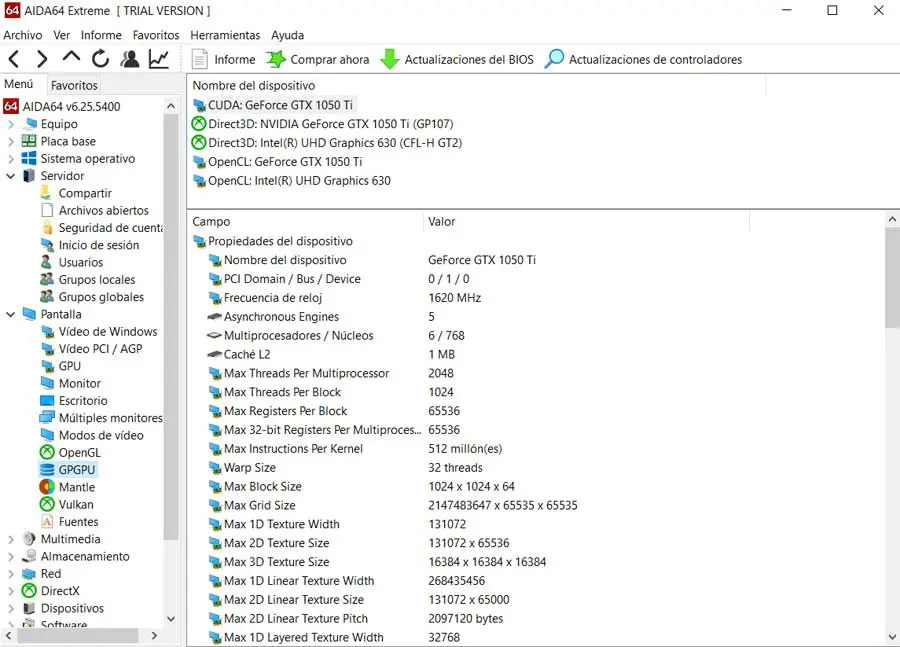 L’une des propositions les plus populaires de ce type est AIDA64 , un logiciel qui existe depuis un bon nombre d’années et qui ne cesse de s’améliorer. Vous pouvez le télécharger à partir de ce lien . Ici, nous allons trouver une interface utilisateur agréable avec une multitude de catégories qui nous montreront une énorme quantité de données liées à l’équipement, à la fois matériel et logiciel.