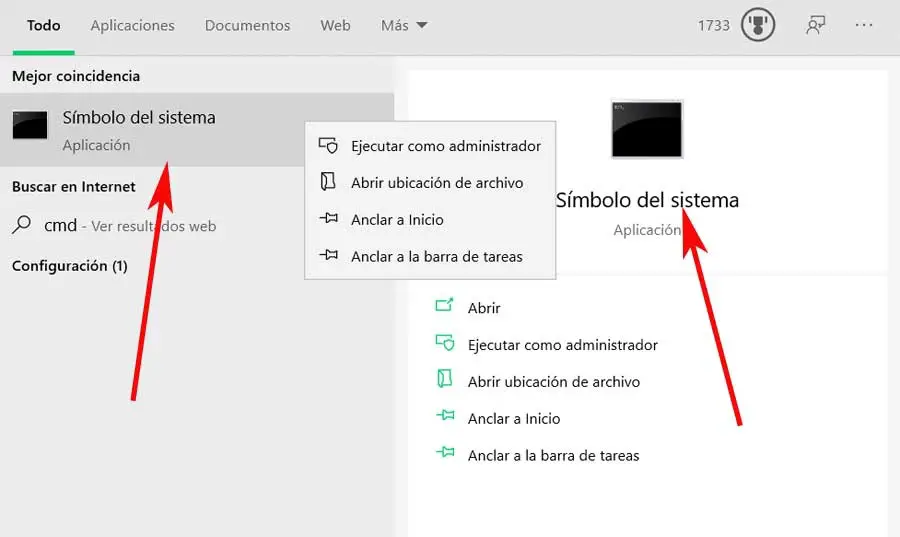 Par conséquent, pour accéder à cette ligne de commande, nous tapons cela, CMD , dans la zone de recherche du menu Démarrer. De plus, pour réaliser ce qui nous intéresse ici, il est recommandé de le faire avec des autorisations d’administrateur.