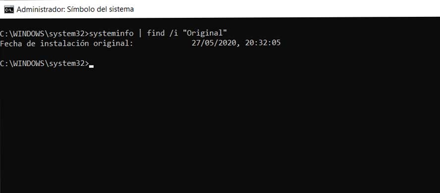 Ainsi, dans le cours que nous voulons voir de première main, la date et l’heure exactes auxquelles nous installons la dernière version de Windows, par exemple , pourraient utiliser la commande systeminfo | find / i «Original».
