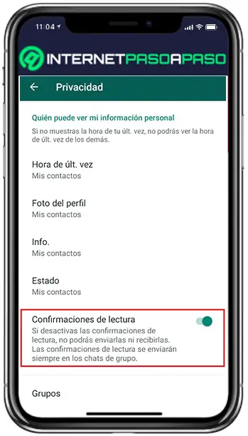 Il est à noter qu’une fois que vous désactivez cette fonction, vous cesserez également de voir la confirmation de lecture de vos contacts , puisque les modifications se font dans les deux sens. Cependant, gardez à l’esprit que, dans les groupes WhatsApp , il y aura toujours des confirmations de lecture , même si vous avez désactivé cette option.