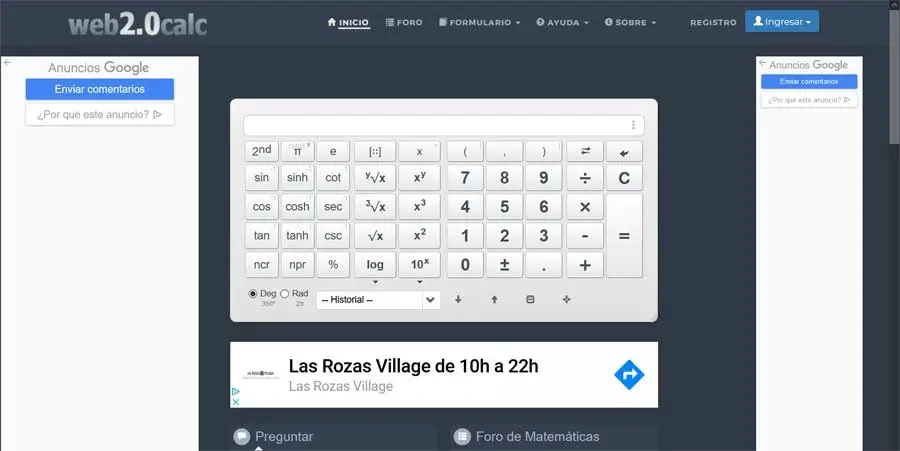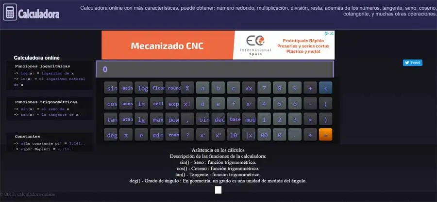 Son nom nous dit déjà tout, puisque nous trouvons un site Web qui nous présente une calculatrice scientifique que nous pouvons utiliser depuis n’importe quel navigateur . En fait, c’est la première chose que nous trouverons à l’écran dès que nous accédons à ce lien , également avec un design sobre et professionnel.