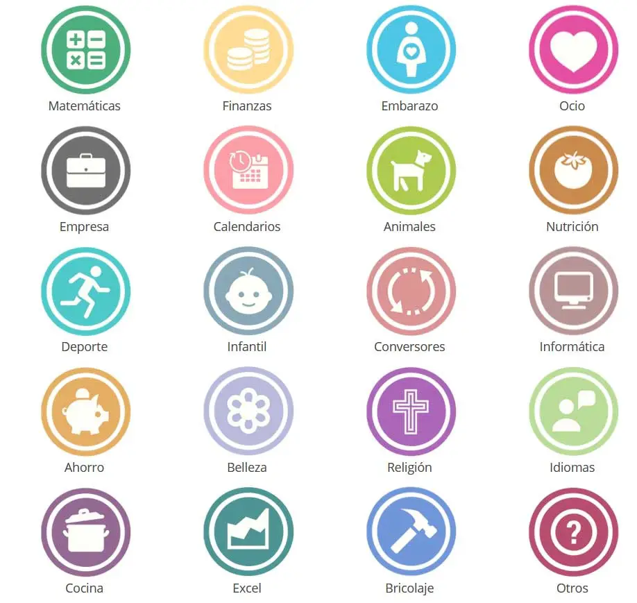 Comme nous l’avons évoqué dans le cas précédent, ces alternatives auxquelles nous nous référons permettent désormais de faire des calculs de nature la plus variée. C’est pourquoi nous allons trouver ici différentes calculatrices, chacune avec son propre bouton d’accès. Ceux-ci nous aideront dans des tâches telles que les finances, les loisirs, les animaux, la beauté, les conversions , pour Excel , pour économiser, etc.
