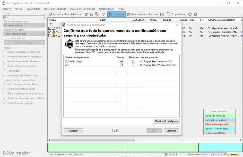 Lorsqu’il s’agit de désinstaller les programmes, Bulk Crap Uninstaller est capable d’automatiser complètement (ou presque complètement) l’ensemble du processus de suppression. De cette façon, nous éviterons les désinstalleurs déroutants qui tentent de nous inciter à réparer ou à annuler la suppression du logiciel. De plus, il vous permet de désinstaller plusieurs programmes en même temps , à la fois, évitant les collisions entre les programmes de désinstallation et accélérant le processus de nettoyage de tout l’ordinateur. Le processus de désinstallation supprime également tous les restes qui peuvent être laissés dans le registre et même les raccourcis du bureau et le menu Démarrer.