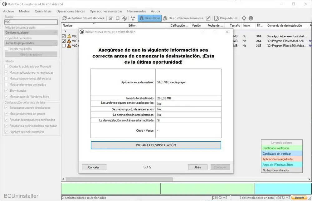 Prêt. Nous aurons déjà supprimé les programmes sélectionnés. Comme nous le verrons, nous retournerons à la fenêtre principale de BCUninstaller, et maintenant les applications que nous avons désinstallées n’apparaîtront plus.