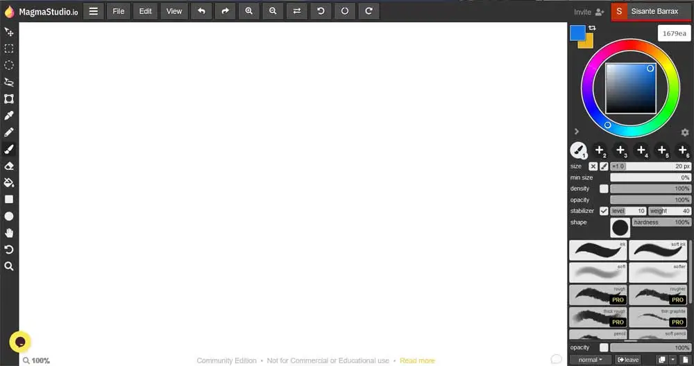 Si nous nous concentrons sur le dessin et le travail de conception, disons que dans Magma Studio, nous trouvons une interface commune dans ce type d’environnement. De cette façon, sur le côté gauche de celui-ci, nous verrons les outils les plus courants dans ces programmes. On parle plus spécifiquement de pinceaux , de compte-gouttes, de figures géométriques , d’effacement, d’arrière-plans, de sélections, etc.