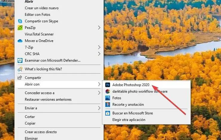 Si tenemos Photoshop configurado en Windows para abrir por defecto las fotos, simplemente debemos hacer doble clic sobre la imagen para empezar a editarla. Si no, otra forma de abrir esta foto es haciendo clic con el botón derecho sobre ella y eligiendo la opción de abrir con > Photoshop CC.