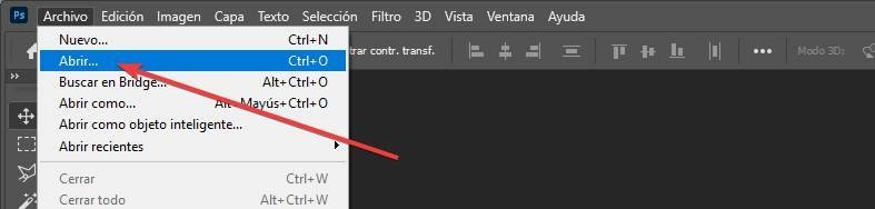 También podemos hacerlo desde el propio Photoshop, seleccionando el menú Archivo > Abrir y seleccionando la foto en cuestión.