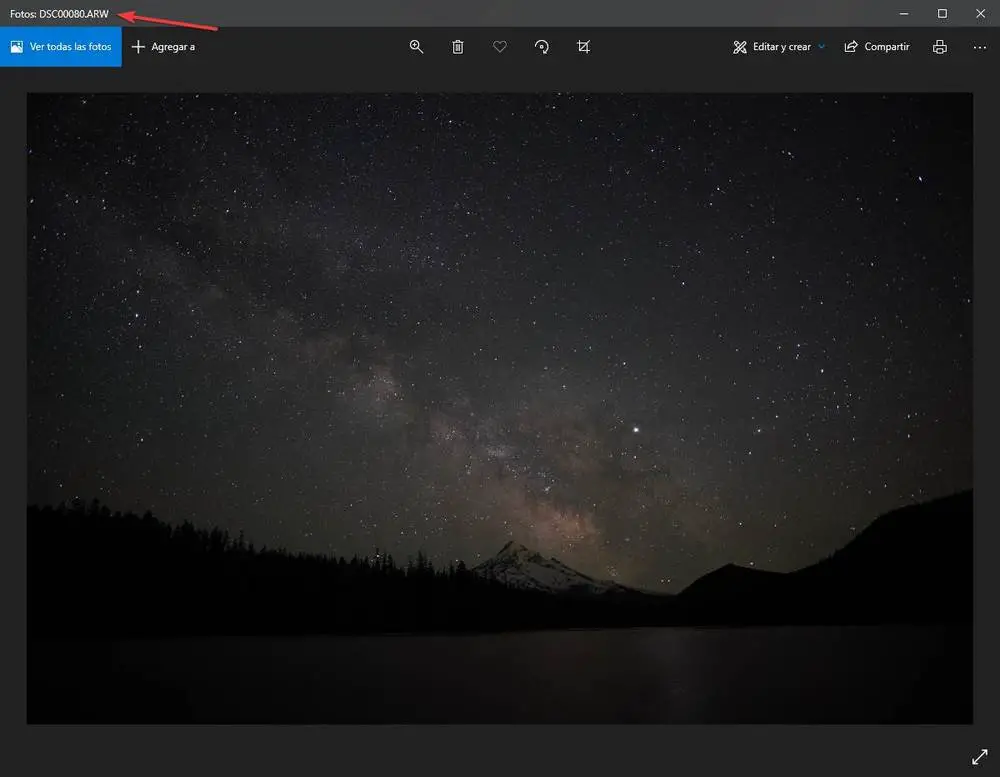 Si no te gusta Camera RAW, obviamente tenemos otras opciones. Si no somos de los que pasamos horas delante del PC retocando fotos, pero nos gusta el formato RAW por no tener compresión, no pasa nada. Hay muchos programas que son capaces de abrir y procesar estos archivos para que se comporten, a grandes rasgos, como un JPEG o un PNG. Elvisor de fotos de Windows 10,por ejemplo, es uno de ellos. Podemos hacer doble clic sobre este archivo y ver cómo es capaz de visualizar la imagen.