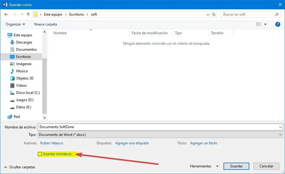 Pour en faire usage, il suffit d’ouvrir le document dans lequel on souhaite modifier cette caractéristique et, dans la fenêtre » enregistrer sous «, nous cocherons la case » Enregistrer la vignette «.