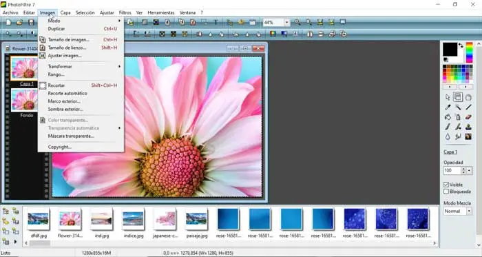 Une fois que nous exécutons PhotoFiltre, le menu principal apparaît avec une interface qui peut nous être assez familière car il a un design similaire à d’autres outils similaires. Bien qu’il soit à l’origine en anglais, il est possible de changer sa langue en espagnol en le téléchargeant depuis son site Web.