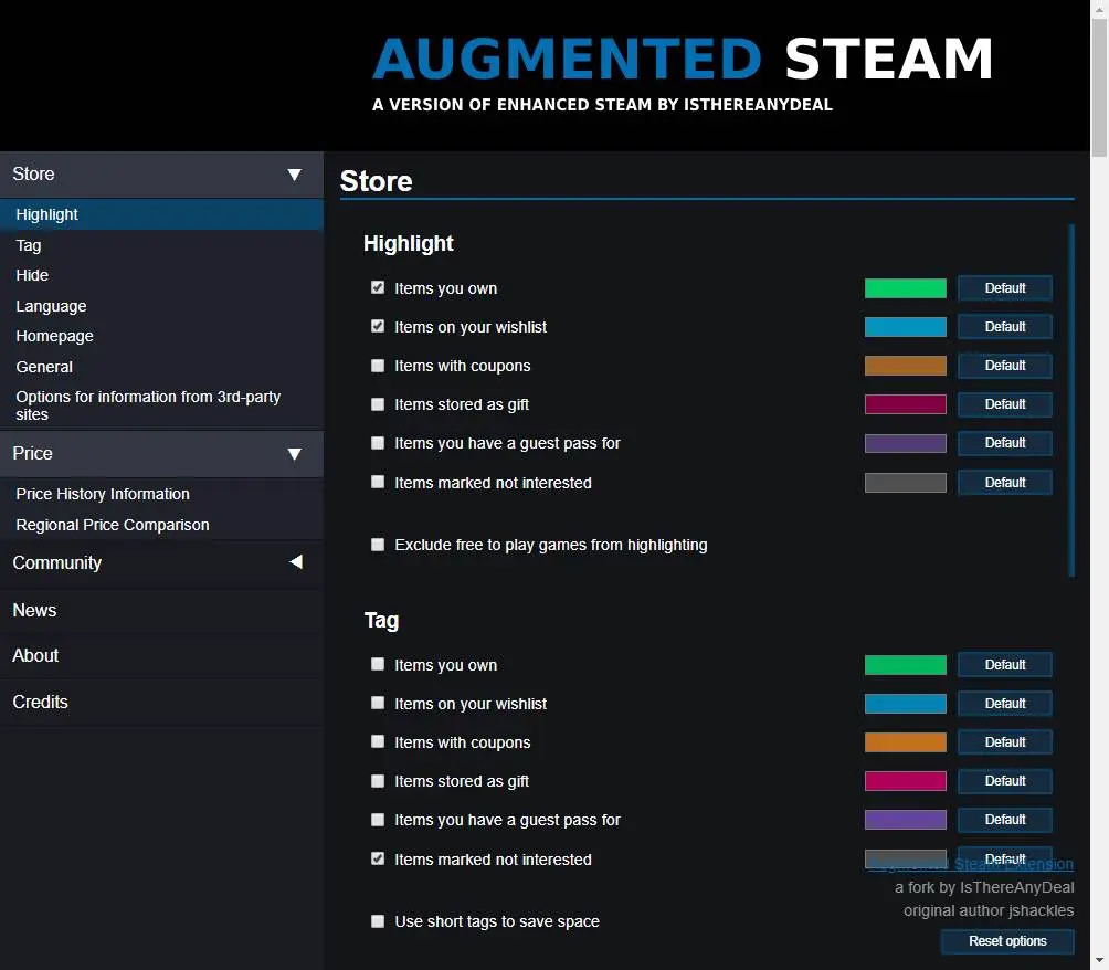 Une fois l’extension installée, elle commencera à fonctionner. Dès que nous entrons dans Steam, nous pouvons commencer à voir ses fonctions dans le magasin.