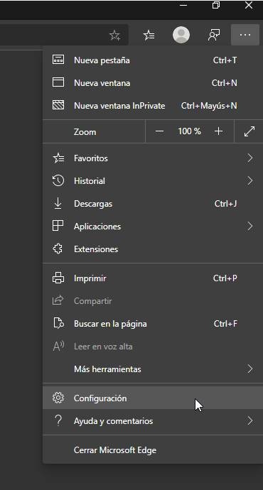 Une fois que nous sommes à l’intérieur de Microsoft Edge, nous allons dans le menu représenté par 3 points (…) et cliquez sur les paramètres.