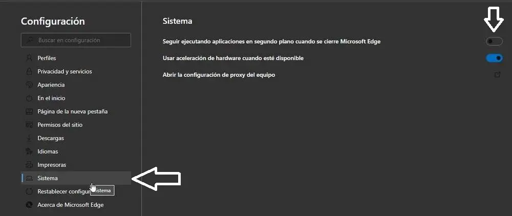 Une fois que cela est fait, nous empêcherions déjà Edge de fonctionner en arrière-plan. Mais il est recommandé d’utiliser cette option comme alternative ou pour compléter la précédente.