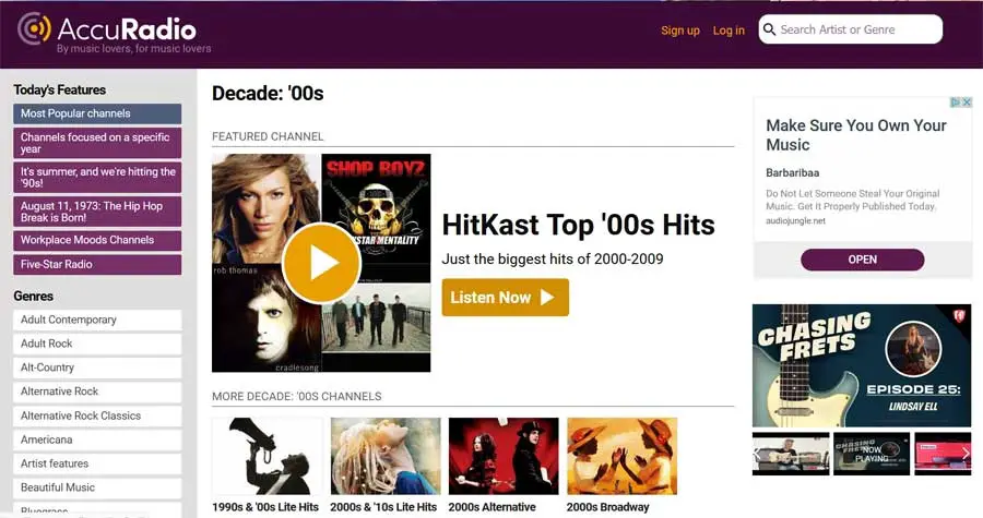 En fait, la principale différence entre cette proposition et le reste de celles commentées est qu’ici, ils ne nous proposent pas de radio en ligne. Cependant, nous allons trouver une énorme quantité de contenu en streaming du monde entier qui a été sélectionné pour sa qualité lors de sa diffusion. Ils sont essentiellement axés sur la musique, nous pouvons donc choisir parmi un grand nombre de genres, d’artistes et de types.