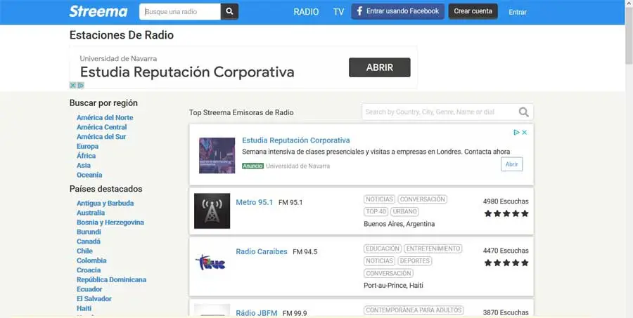 Dans ce cas, nous parlerons d’une proposition qui dans un premier temps se concentre également sur les stations nationales . Ainsi, dès qu’on y accède, on trouve une série de raccourcis vers les plus pertinents du moment. Par conséquent, si ce que nous voulons n’est pas de rechercher dans des listes interminables de ces éléments, c’est également une excellente option. Nous pouvons y accéder à partir de ce lien .