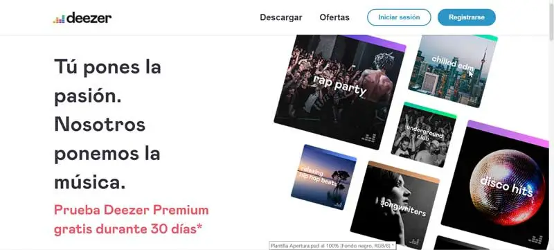 Une autre alternative claire que nous pouvons trouver à Spotify est Deezer. Comme pour la société suédoise Deezer, cela nous permet également de créer un compte gratuit avec lecture aléatoire , avec des publicités et un accès à 56 millions de chansons . Si nous décidons d’opter pour certains de leurs abonnements payants, nous pouvons écouter de la musique sans publicité et avec la possibilité de la télécharger sur notre appareil pour l’écouter sans connexion Internet.
