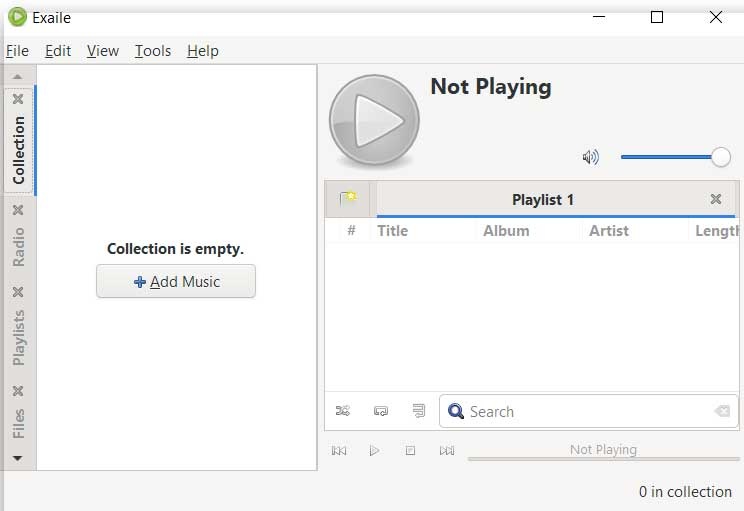 Si nous ne regardons pas la barre latérale, elle se compose de plusieurs onglets. L’onglet Collection fait référence à notre bibliothèque musicale. Mais en même temps, Exaile vous permet d’écouter les stations de radio Internet à partir de l’onglet Radio. Ici, nous pouvons enregistrer nos stations préférées pour y accéder plus facilement. Pour ce faire, il suffit de cliquer sur le bouton Ajouter une station et d’attribuer un nom à la station et de coller son URL .
