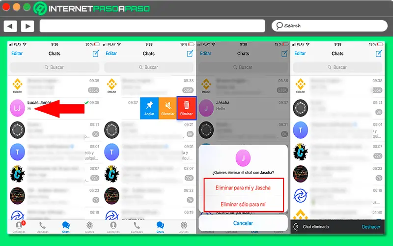 Dans le cas où vous souhaitez supprimer la conversation, dans ce cas absolument tout sera supprimé, c’est-à-dire que la conversation n’apparaîtra plus dans votre liste de discussion. De plus, vous aurez également la possibilité de supprimer le chat non seulement pour vous , mais aussi le chat du destinataire et de cette manière vous assurer que ce que vous avez dit ne puisse pas être lu par d’autres personnes. La suppression de la conversation est une action recommandée lorsque vous ne prévoyez plus de parler à cette personne dans les heures ou les jours à venir.