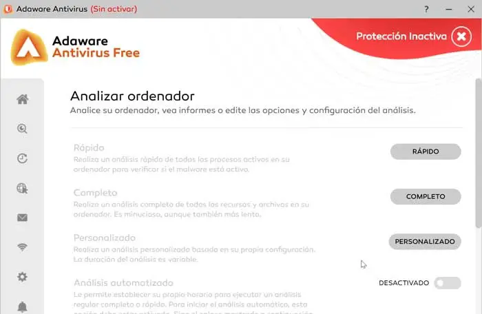 - Analyse automatisée : en activant cette fonction, nous pouvons planifier une analyse régulière, rapide ou complète.
