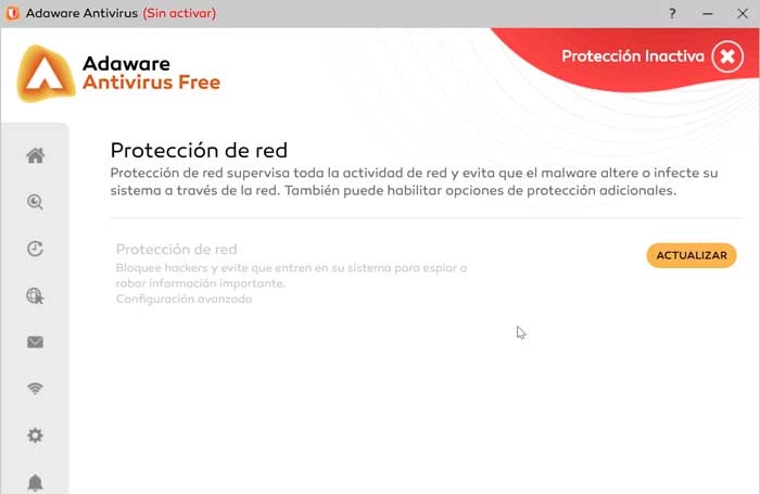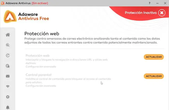 Une fois que nous avons exécuté Adaware Antivirus, le menu principal apparaît , entièrement en espagnol avec une interface simple et claire. Dans le menu Démarrer, nous pouvons voir un résumé de la protection avec la dernière analyse effectuée et différentes méthodes de protection telles que: Protection en temps réel, protection Web, protection des e-mails, protection du réseau, etc.