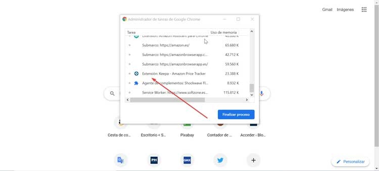 L’un des conseils les plus utiles pour économiser la batterie en utilisant Chrome est d’ éviter d’ouvrir un grand nombre d’onglets en même temps . Cela fait que plus le nombre d’onglets est élevé, plus la consommation de mémoire dont vous avez besoin est grande puisque nous aurons beaucoup de pages Web qui fonctionneront en arrière-plan et cela aura un impact négatif sur l’utilisation de notre batterie. À partir du gestionnaire de tâches Google, nous pourrons consommer le processeur et la mémoire créés par chaque onglet que nous avons ouvert. C’est pourquoi chaque fois que nous utilisons la batterie de notre ordinateur portable, nous n’utilisons pas trop d’onglets ouverts dans Chrome