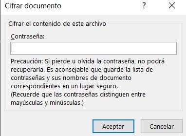 Comme son propre nom nous donne un aperçu, avec cette autre option, nous ajoutons un mot de passe au DOCX afin que seuls ceux qui ont ce mot de passe puissent accéder à son contenu. Par conséquent, nous pourrons donner ce mot de passe à tous ceux qui souhaitent voir le document en tant que tel.