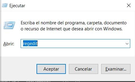 Pour ce faire, la première chose que nous faisons est d’ouvrir le registre Windows. C’est quelque chose que nous réalisons en ouvrant simplement la fenêtre Exécuter du système via la combinaison de touches Win + R, après quoi nous lançons la commande regedit.
