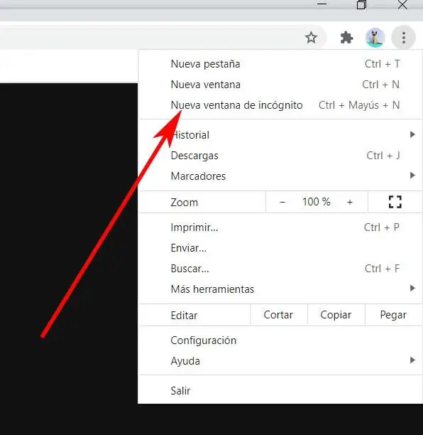 Tout d’abord, nous vous dirons qu’au début, utiliser ce mode privé auquel nous faisons référence dans Chrome, c’est quelque chose de très simple. Il suffit d’accéder au menu principal du programme et de sélectionner l’option Nouvelle fenêtre de navigation privée.