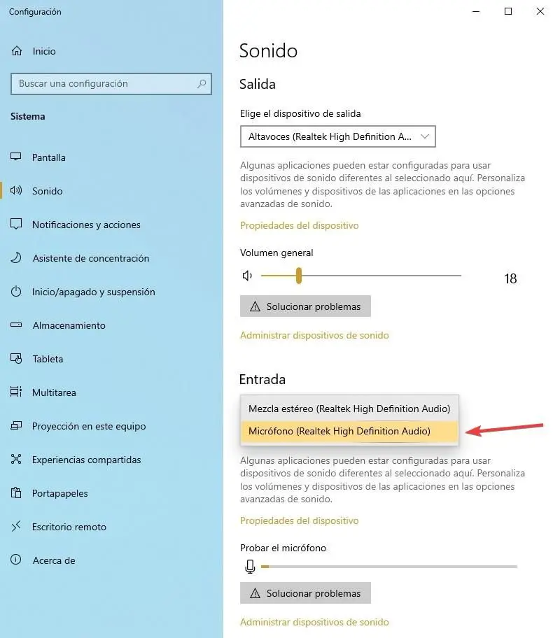 Avant que nous ayons enregistré le son via un périphérique de sortie, les haut-parleurs. Maintenant, nous allons enregistrer notre voix via le microphone . Nous pouvons utiliser un microphone externe ou, si nous n’en avons pas, nous pouvons utiliser celui que nous utilisons lorsque nous parlons par vidéoconférence.