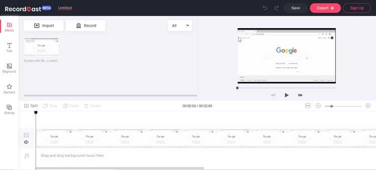 RecordCast est une application entièrement en ligne qui nous permet d’enregistrer le contenu affiché sur l’écran de votre ordinateur ou de votre webcam en haute qualité et sans filigrane donc totalement gratuit . De cette façon, nous pouvons enregistrer notre écran en ligne en un seul clic et sans avoir à télécharger de logiciel ou d’extensions.