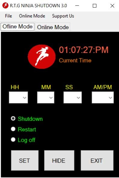 RTG Ninja Shutdown, shutdown, redémarrer ou se déconnecter