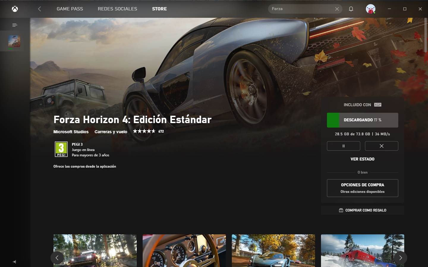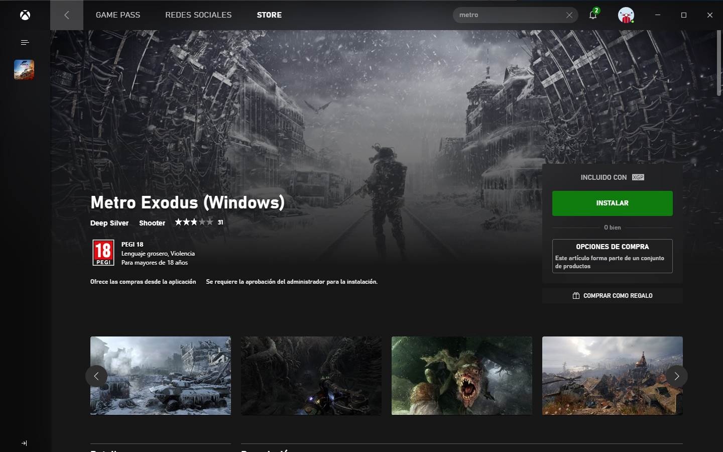 Si nous utilisons l’application Xbox que Microsoft nous a demandé d’installer lorsque nous nous sommes inscrits au service, il est également possible de télécharger les jeux à partir d’ici. Pour ce faire, il suffit de parcourir la boutique pour trouver le jeu que nous voulons. Ceux qui sont inclus dans le service auront l’étiquette «inclus avec XGP».