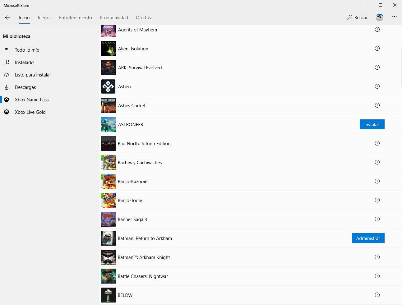 En plus de pouvoir rechercher les jeux individuellement, nous pouvons également voir une liste de tous les jeux disponibles dans ce programme à partir de la liste des téléchargements sur le Microsoft Store.